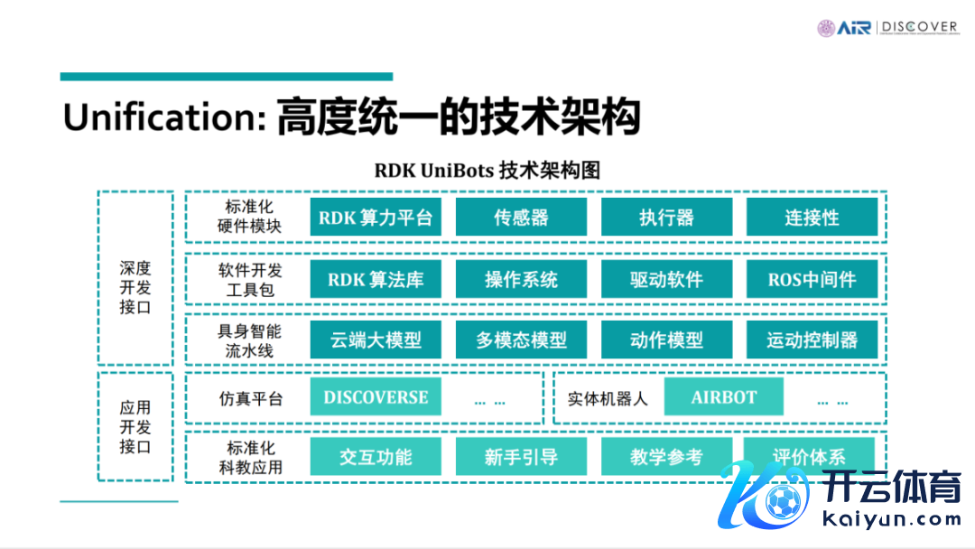 该平台遴荐分层式时间架构,涵盖了从硬件到软件的完满措置决策。它随机全面买通从 RDK 算力平台到 DISCOVERSE 仿真平台、AIRBOT 系列机器东谈主平台等具身智能软硬件哄骗载体的时间开荒链路。当今,这个平台仍是哄骗于 K12 STEAM 解释、行状解释、高级解释和科研探索等多样类型的科教场景,并满足了不同庚岁档次用户使用需求。