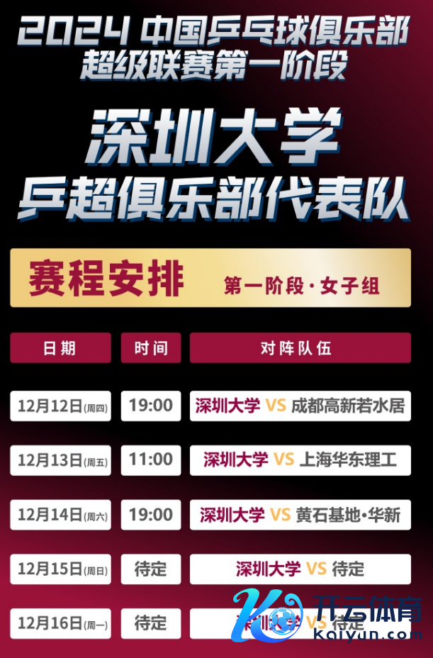 北京本事12月10日,深大乒乓形势公布深圳大学乒超俱乐部第一阶段女子组的赛程: