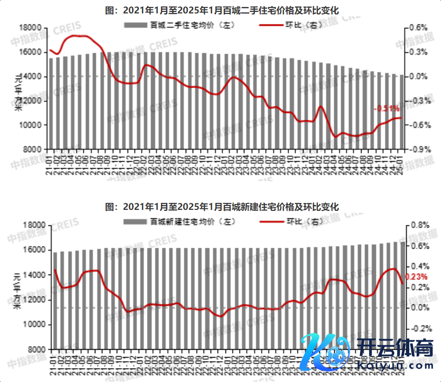 房价方面,据中指霸术院2月1日上昼发布的最新数据,1月份寰宇百城新建住宅均价为16693元/平方米,环比结构性高涨0.23%,同比高涨2.76%;百城二手住宅平均价钱为14130元/平方米,环比下落0.51%,跌幅较2024年12月收窄0.02个百分点,已贯穿6个月收窄。