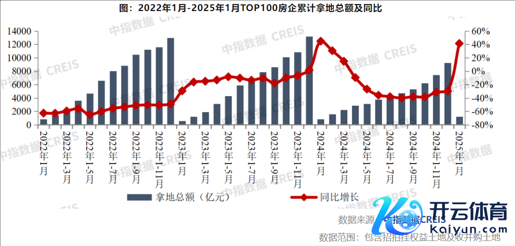 另据中指霸术院数据,1月百强房企拿地总数1210.7亿元,同比增长41.4%,相较旧年由负转正。