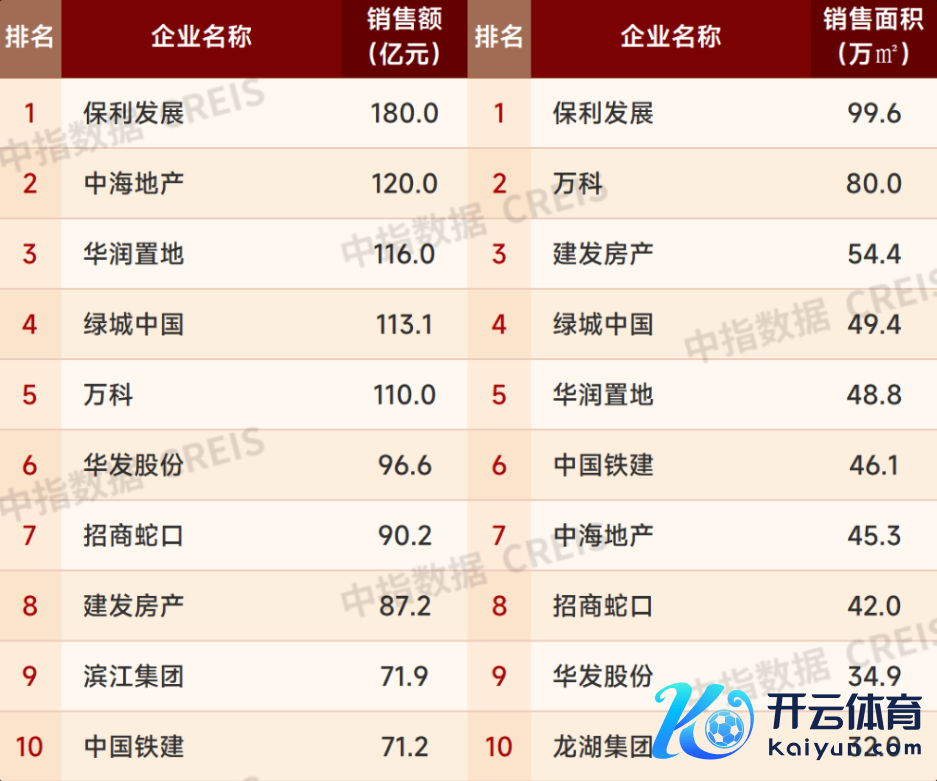 2025年1月房企销售金额及面积TOP10 开端:中指霸术院