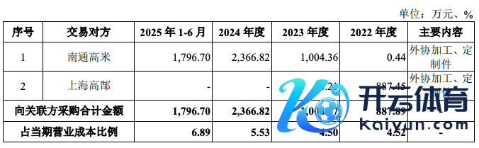 此前袒露的报告材料潜入,2022年至2024年,公司向酌量方南通高米采购金额区别为0.44万元、1004.36万元、2366.82万元和1796.70万元;2022年和2023年,公司向酌量方上海高郜采购金额区别为887.45万元、0.21万元,公司在2023年后未再进取海高郜采购。