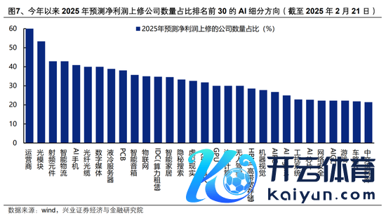 跟着AI产业冲突、内需复苏,本年不少AI细分界限有望迎来景气改善。证据市集一致预期,本年AI大大宗细分标的有望迎来景气加快或窘境回转,而联结本年以来AI50大细分标的中2025年预期净利润上修个股数目占比来看,运营商、光模块、射频原件、智能物流、AI手机、光纤光缆、数字媒体、劳动器、PCB等标的名次相对居前。