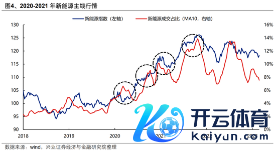 另一方面“成交占比”、“换手率”、“拥堵度”等激情倡导更适用于基本面、产业逻辑相对远大的行业。当一个行业、板块所处的产业趋势、生命周期、政策环境、基本面逻辑等出现要紧变化时,则可能冲突交往拥堵的镣铐,而酿成新的趋势性行情。举例2013-2014的中小创、2016-2020年的中枢财富、2020-2021年的新动力等,均是在产业趋势赞助下,不停穿越短期的交往拥堵,在成交占比不停新高的经过中闲静阐发其干线地位。