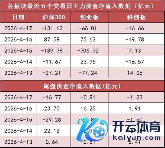 沪深300当天主力资金净流出131.63亿元,创业板净流出66.01亿元。