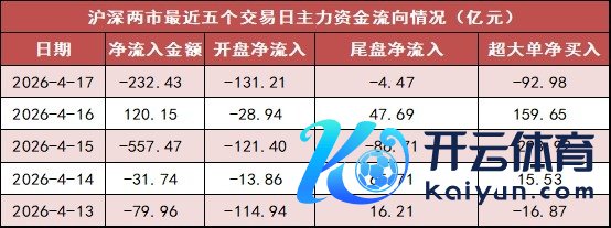 当天沪深两市主力资金开盘净流出131.21亿元,尾盘净流出4.47亿元,全天净流出232.43亿元。