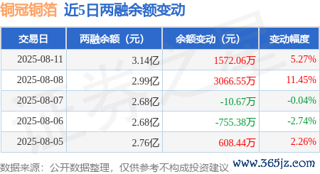 本站音书,8月11日,铜冠铜箔(301217)融资买入1.68亿元,融资偿还1.53亿元,融资净买入1572.5万元,融资余额3.13亿元。